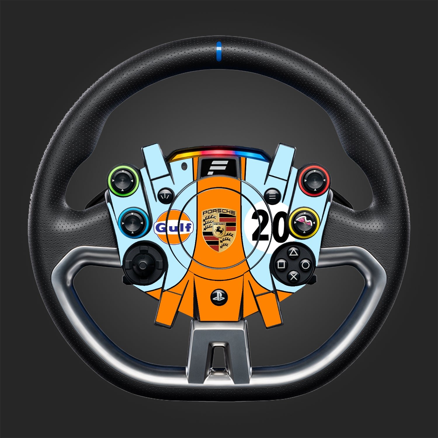 This is a design inspired by the Gulf Porsche 917 Racing Cars that competed at Le Mans