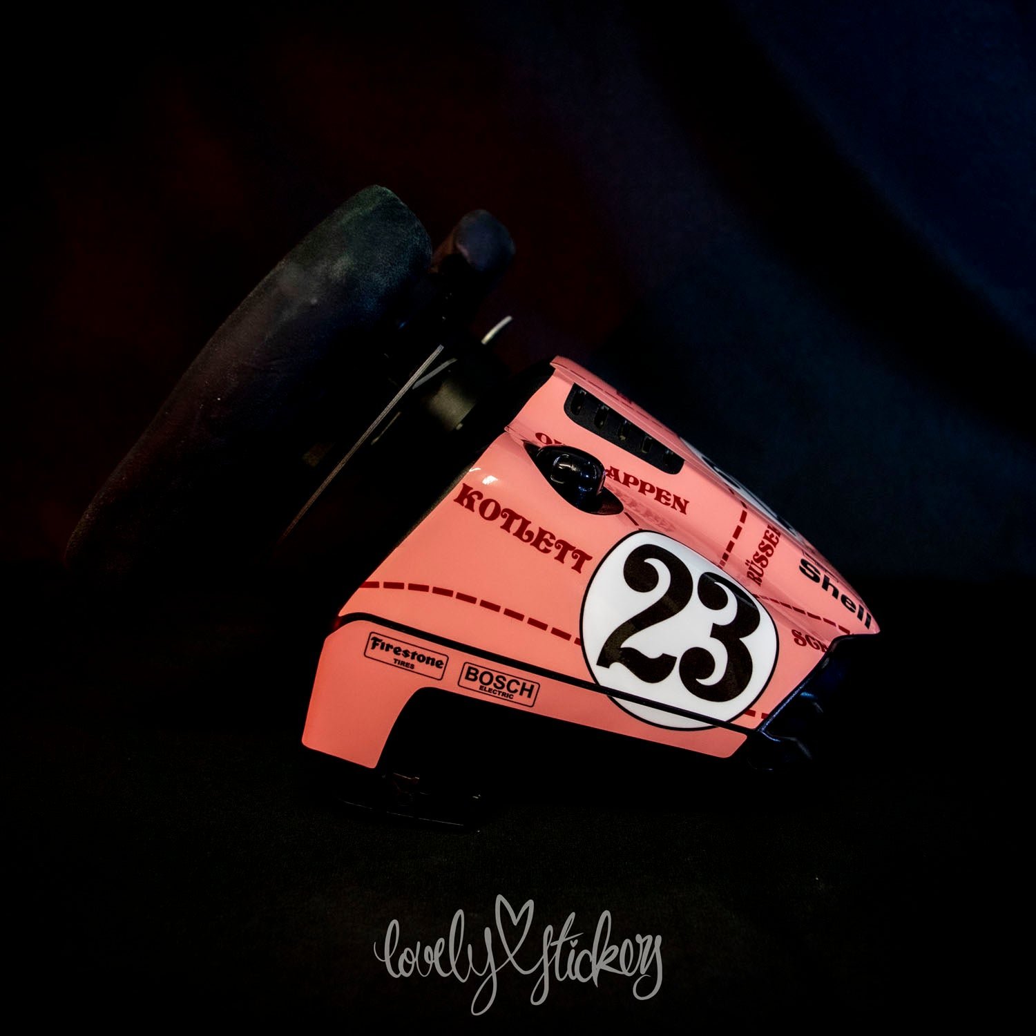 This is a design inspired by the Pink Pig 917 Porsche Racing Cars that competed at Le Mans in 1971